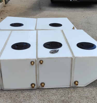Costruzione e manutenzione personalizzata di serbatoi stoccaggio acqua-gasolio in PE e PP per imbarcazioni. La scelta di utilizzare materiali termoplastici per realizzare serbatoi nautici rende tale opzione ideale in quanto, se ben realizzati, questi manufatti sono inattaccabili da corrosione, ossidazione, correnti vaganti e soprattutto leggeri ed igienicamente perfetti.